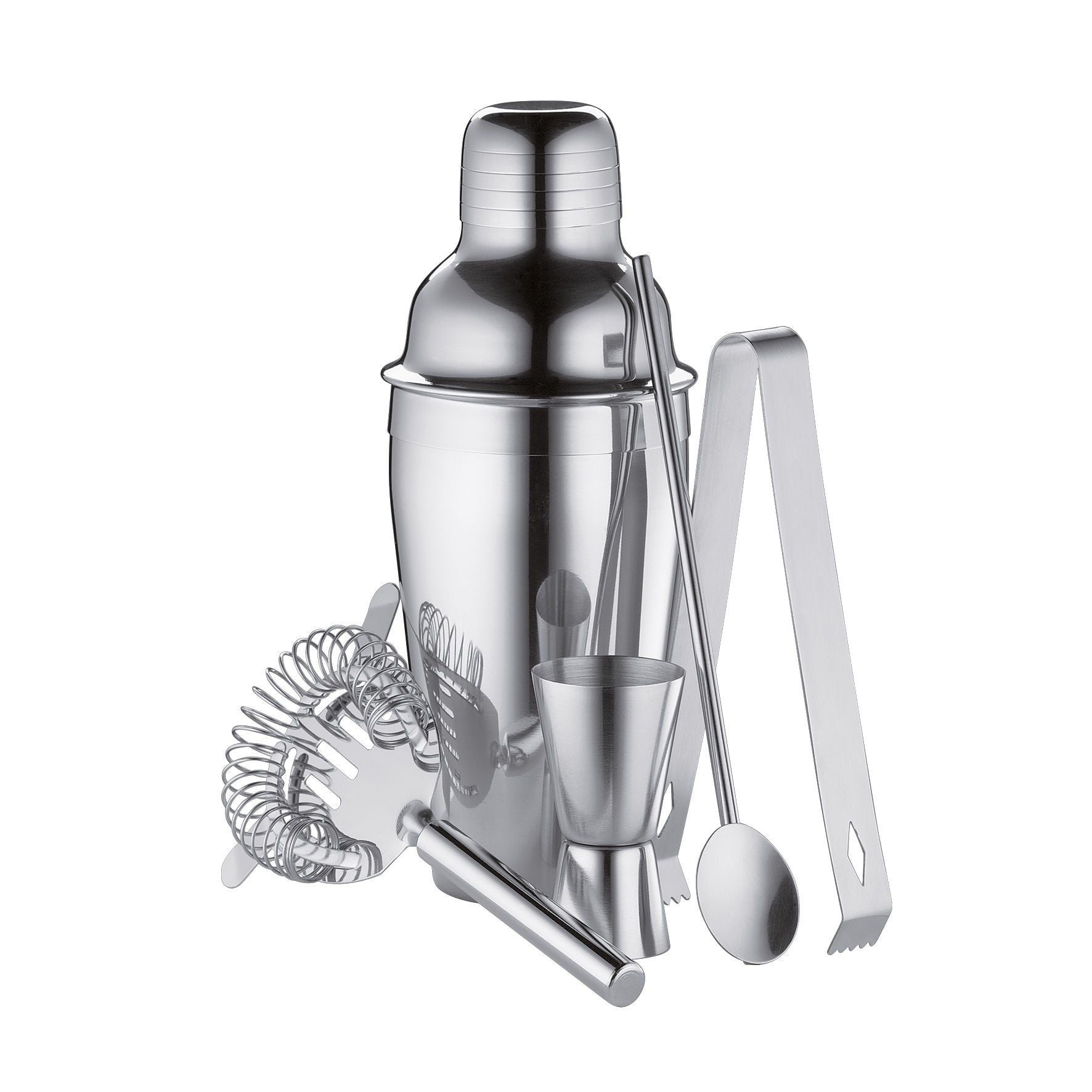 Cocktailshaker (500 ml), Cocktaillöffel, Eiszange,