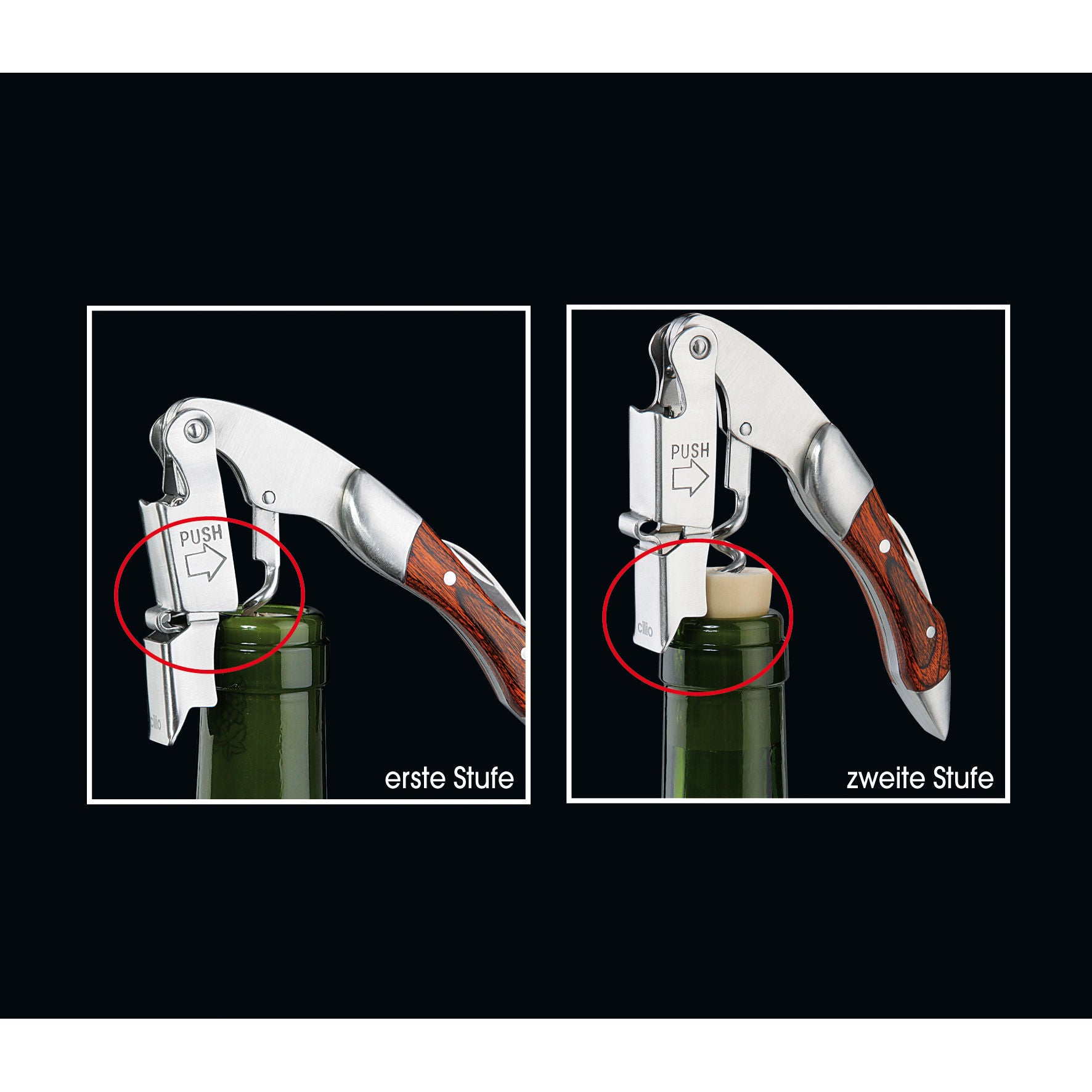 3 Funktionen: Korkenzieher, Folienschneider,