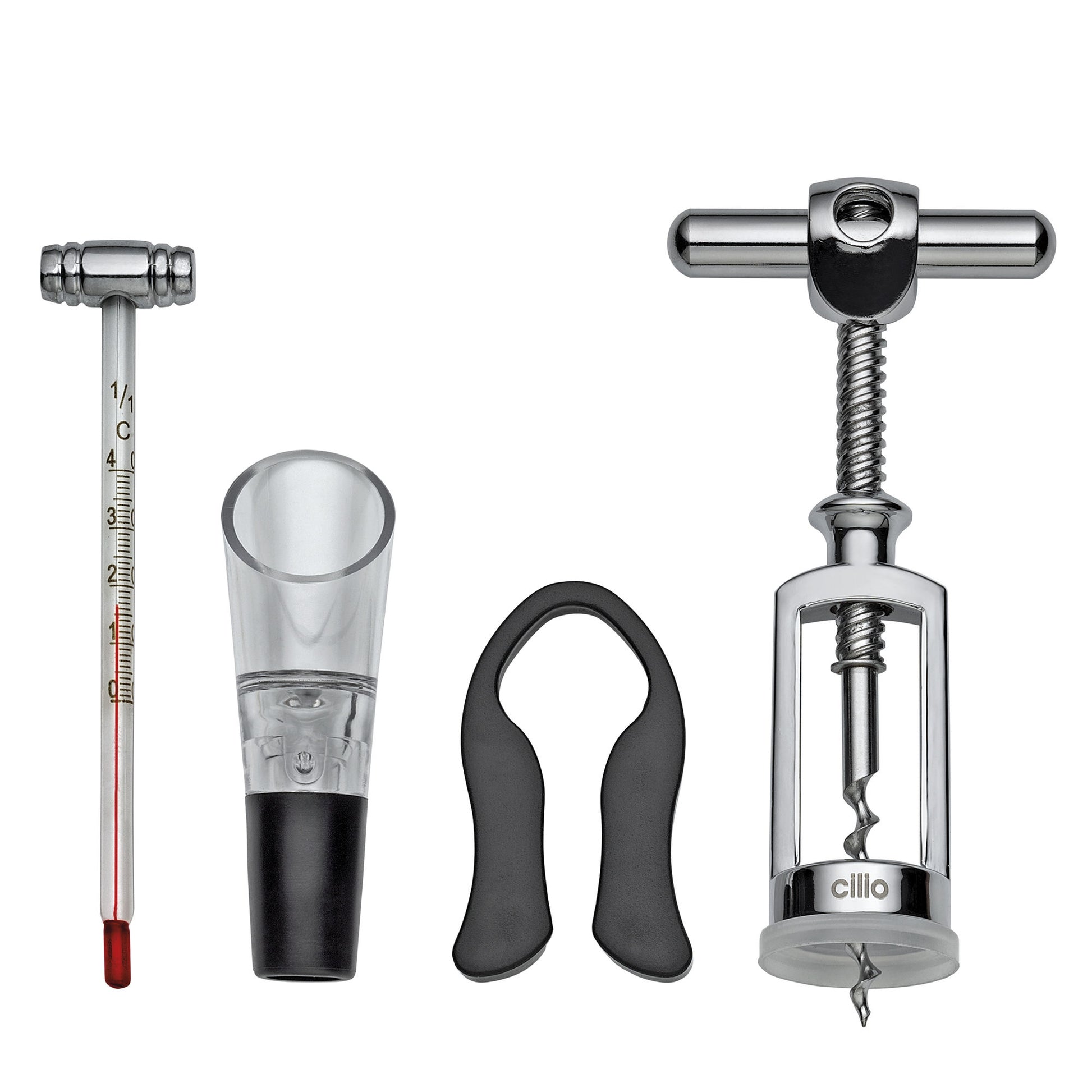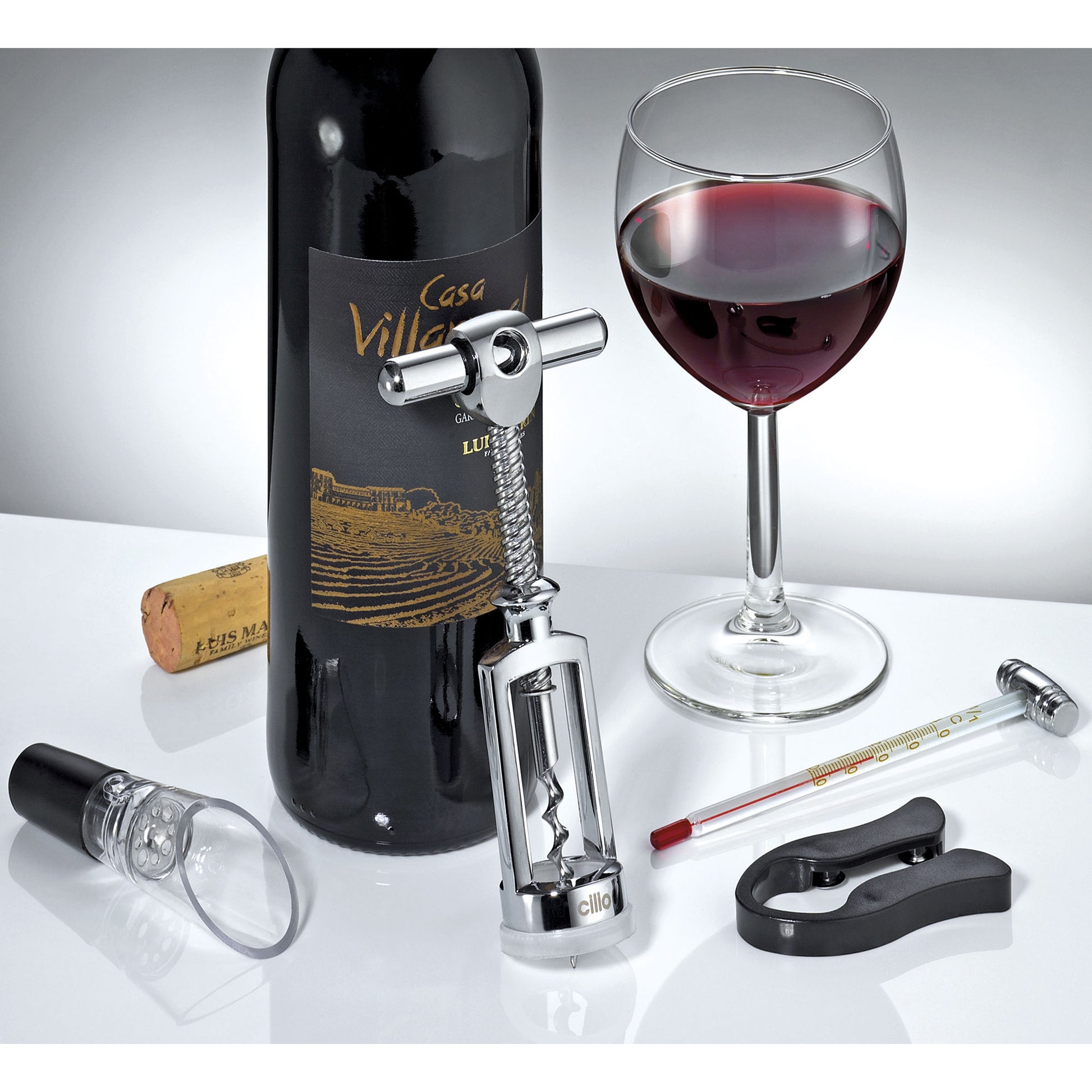 Inhalt: Korkenzieher, Ausgießer,
