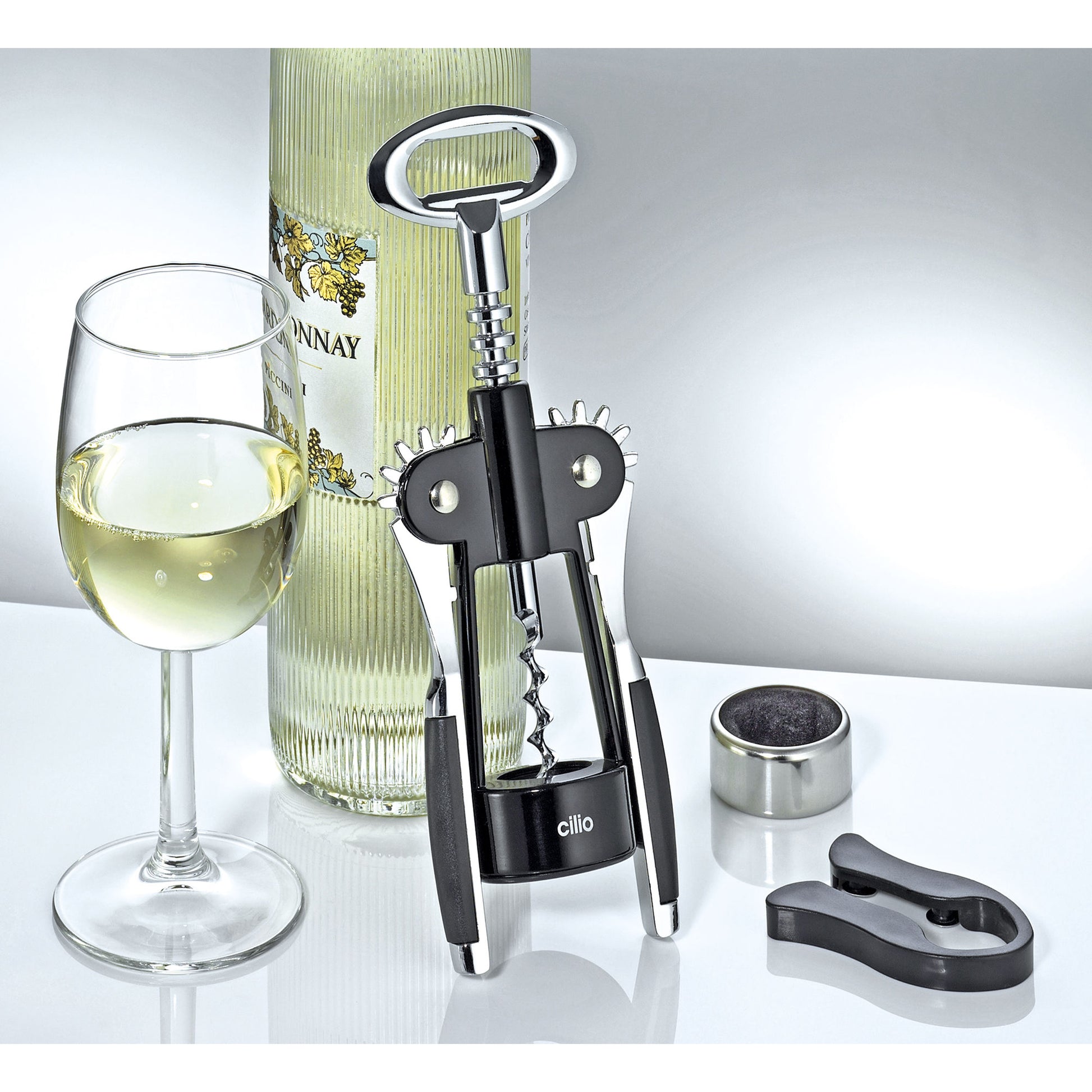 Inhalt: Flügel-Korkenzieher, Tropfenfänger &