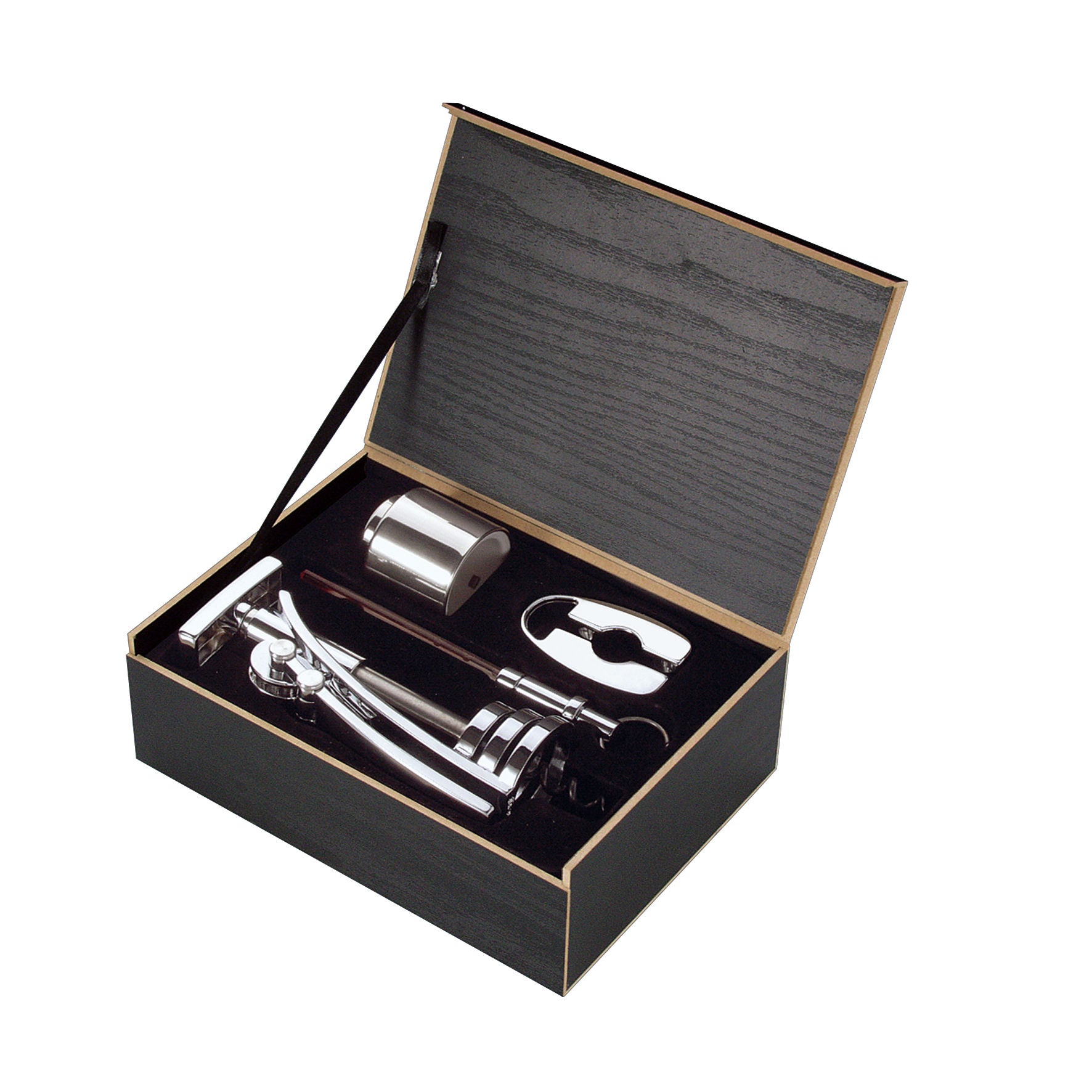 Korkenzieher, Folienschneider, Flaschenverschluss und Weinthermometer,
